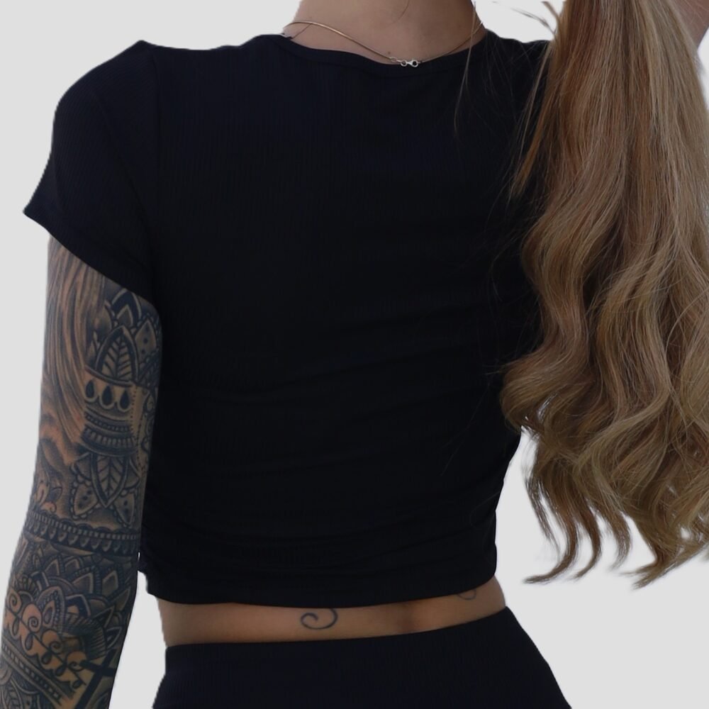 Блузи и топове19,00 € / 37,16 лв.Опции This product has multiple variants. The options may be chosen on the product pageБлуза с къс ръкав от мека рипс материя